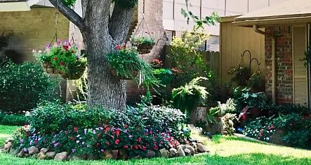 Окружающие резервуар зеленые насаждения играют важную роль, ограничивая прямой доступ ультрафиолетовых лучей и предупреждая чрезмерно активный рост водорослей. Высадка производится по прошествии двух недель с момента заполнения, а выбор зависит от общей концепции: