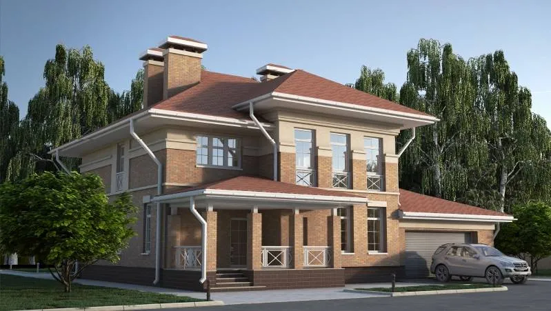 Это просторный, изысканный и солидный коттедж.Пространство первого этажа зонировано под кухню с обеденной зоной, гостиную и бильярдную, гостевую и раздельный санузел. На втором этаже — спальни, ванная и гардеробная. Гараж рассчитан на два автомобиля. Здесь комфортно расположится не только большая семья, но и многочисленные гости.